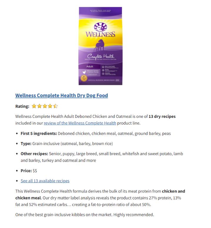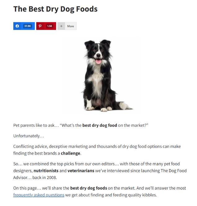 Here’s another example. Since DogFoodAdvisor promotes dog food products, its blog posts revolve around dog food, too. To increase the chances of conversions, DogFoodAdvisor also promotes its affiliate products in the same article. In fact, if you scroll down, you’ll see this list: