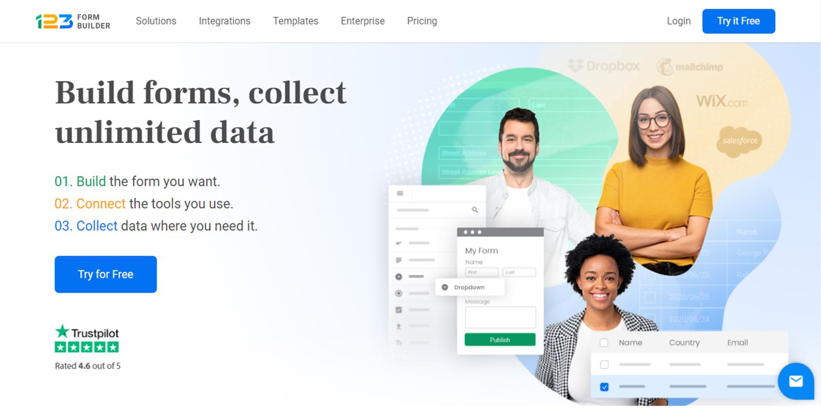 123FormBuilder integrates with more than 80 popularly used platforms. Some of these are MailChimp, Salesforce, HubSpot, Weebly, Wix, Zoho, Stripe, Marketo, Google Drive, Blogger, Sitebuilder, Webydo, Typepad, WordPress, Moonfruit, and Joomla. So, you need not import, export, or manually enter data.