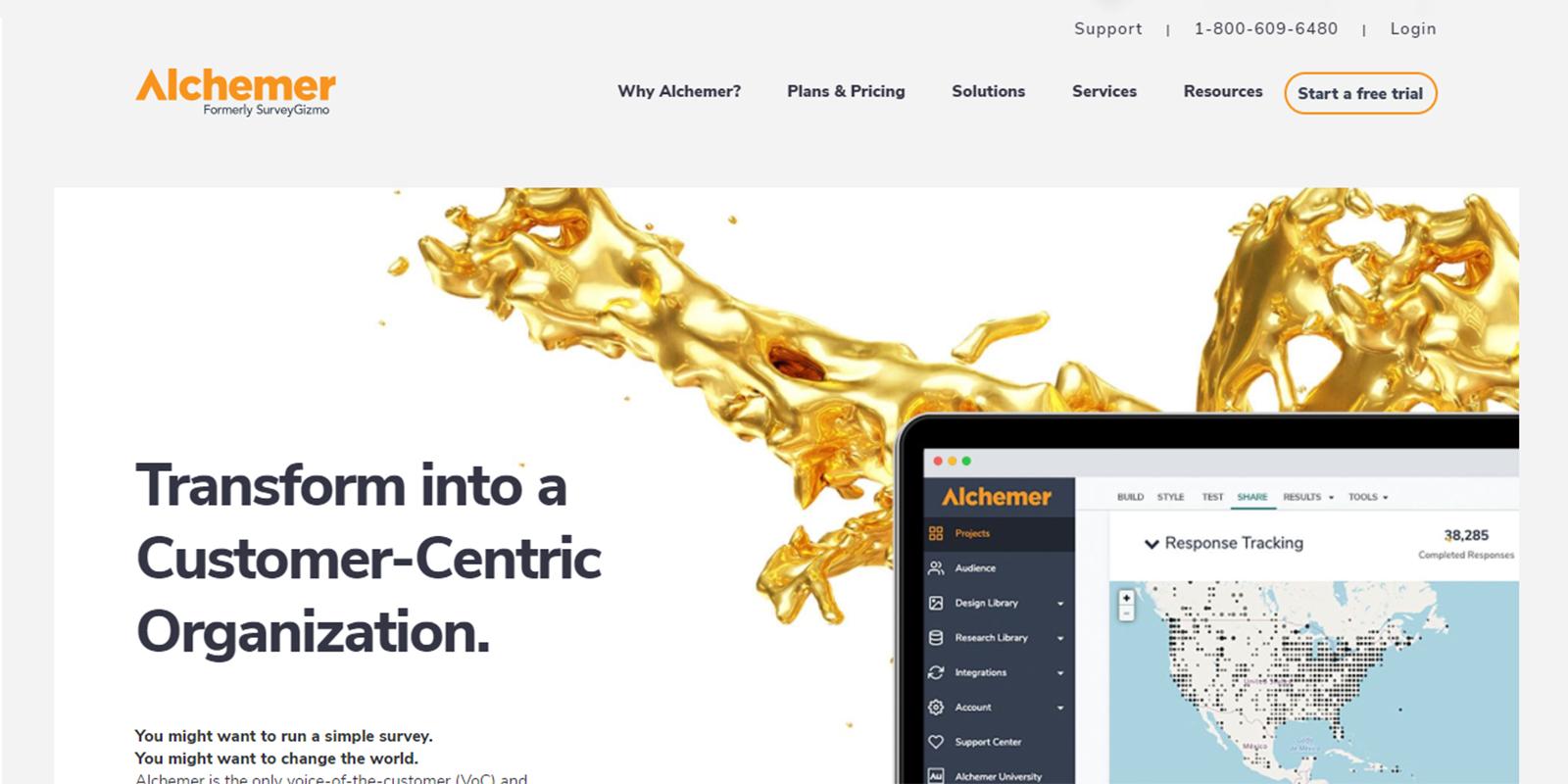 Previously known as SurveyGizmo, Alchemer is another online survey tool for creating stylish surveys. It offers 4 priced plans (Solo, Basic, Professional, and Enterprise) and a free plan. While the paid versions come with advanced features like data encryption, API, customized themes, multiple users, skip logic and piping, and integration with third-party extensions, the free version too is useful.
